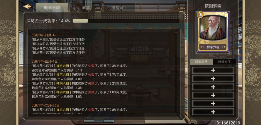 如图,下达任务弄个一键派遣,四方馆里的随从直接就整个受伤退出了,不管是势力表里的操作还是下达任务,以前一键派遣就行,现在不光要记得四方馆里6个随从的名字,每次还要额外点6次排除那6个人,真的搞得人不想动东厂了,官方大大能否优化一下?