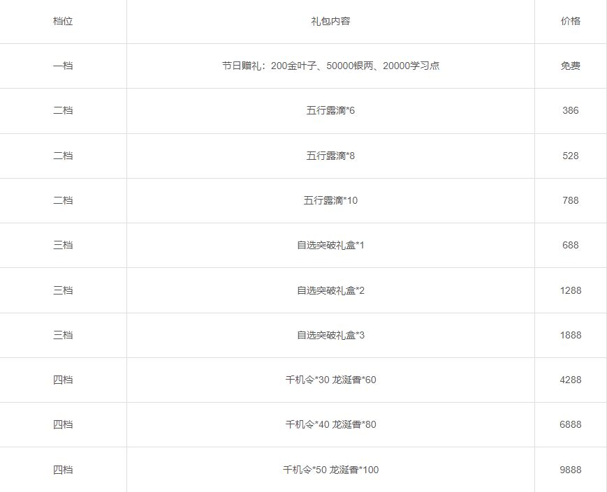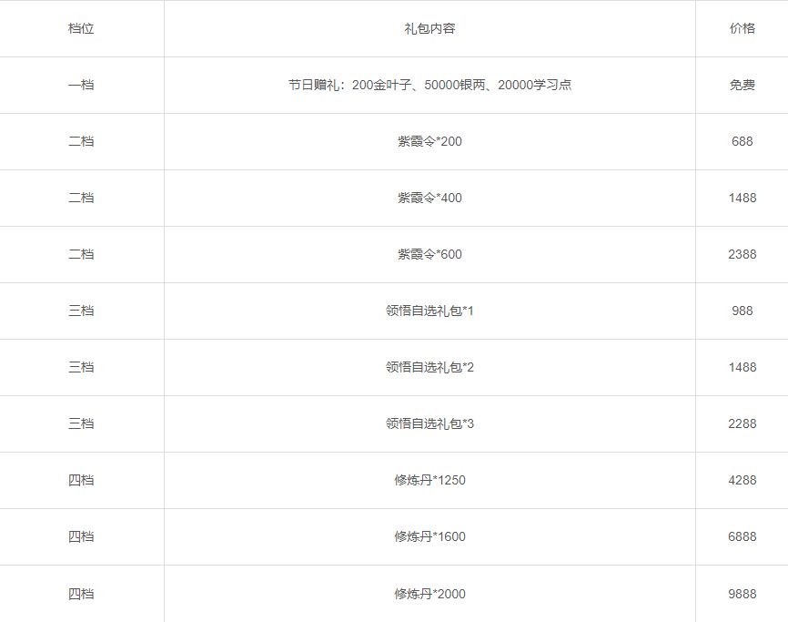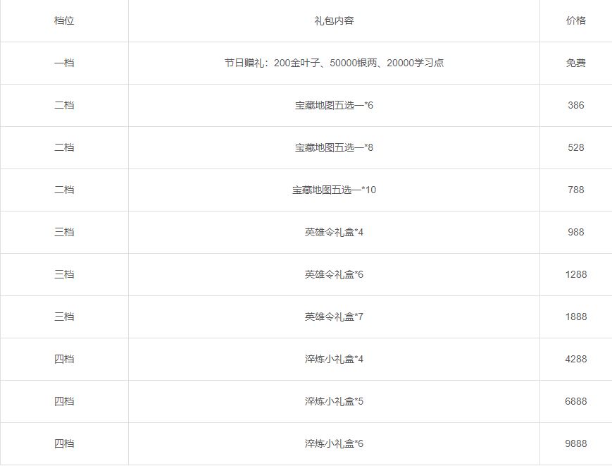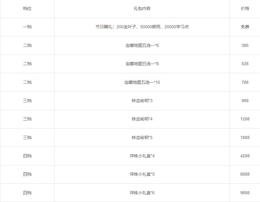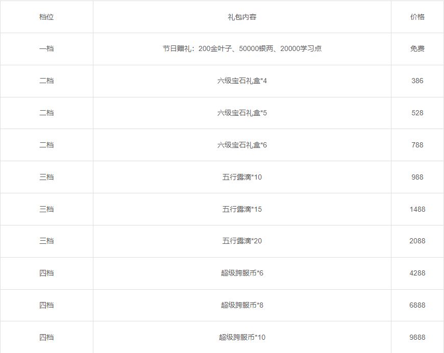 活动一:活动期间将限时上架节日礼包,礼包内容如下