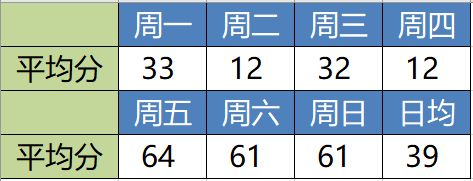 从平均分上来看,在狂野周末(每周五16:00至下周一16:00)期间,选手们的上分能力确实很强。在周五——周日三天里,头部玩家们平均每局的分数都达到了60分以上。当然,这只是一个平均值,事实上在周一和周五到周日的这几天里,几乎每位选手都打出了该周内的最高和最低分。不过由于我们的赛制,低分是不会计入总分哒!所以最后呈现出的结果就是,狂野周末确实很适合上分! 经常看赛事新闻的朋友一定会记得,我们曾经推过一条有关“大佬每天打多少局UNO”的新闻。事实上,那条新闻中的内容也与我们此次的结论不谋而合。在一周之中,玩家们在周二的游戏热情是最低下的,平均游戏场次是一周中最少的,仅有40场(周天则有59场)。配合平均分来看,热情和努力程度可能确实会影响到上分哦~