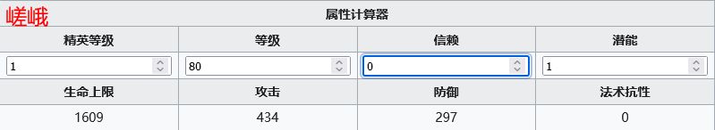 由于 精二 1级 0信赖 潜能1 时的面板数据和 精一 80级 0信赖 潜能1 时相比没有变化,所以下文的计算我将沿用 精一 80级 0信赖 潜能1 的面板数据。