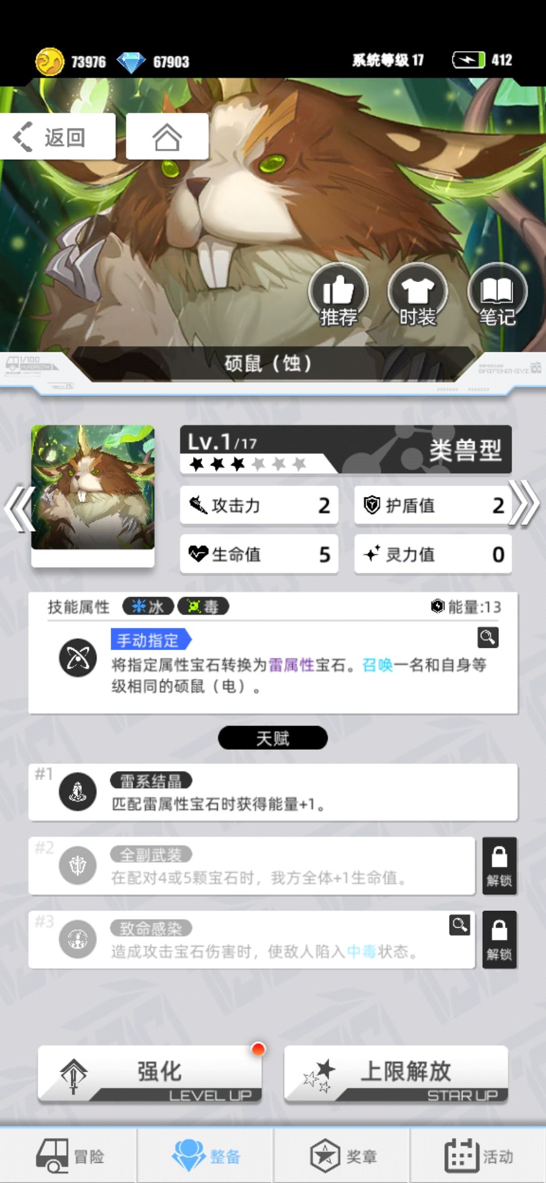 另外值得一提是硕鼠这张卡,这卡可以稳定地雷充能并获取回合,能召唤小怪挡刀,天赋1还是雷属性加成——简直是完美的辅助!