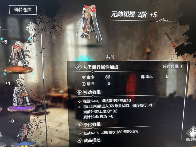 有件装备是浸染多少次加属性的,这永远是零的浸染值直接让这就装备毫无价值了