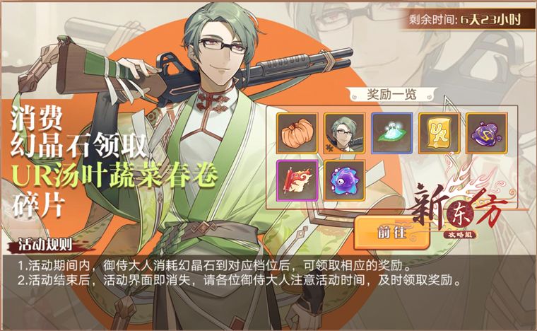 1. 参与这个活动主要为了南瓜,即狂欢福袋里的奖励,不要盲目参与,如果只图春卷飨灵,还不如等之后卡池直接氪(第14轮才给一只春卷)