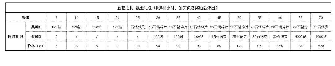 3. 氪金礼包的内容如下
