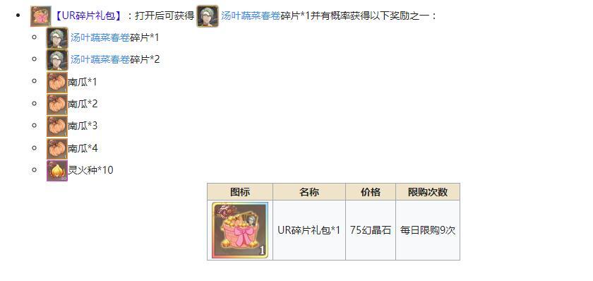 道具:1春卷碎片(必得)+春卷碎片/南瓜/大蒜(随机给一样)