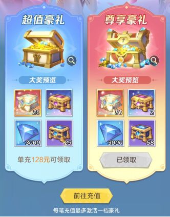 4. 神域集结令>钻石宝库(68元>198元)>个别弹窗钻石礼包(越便宜性价比越高)