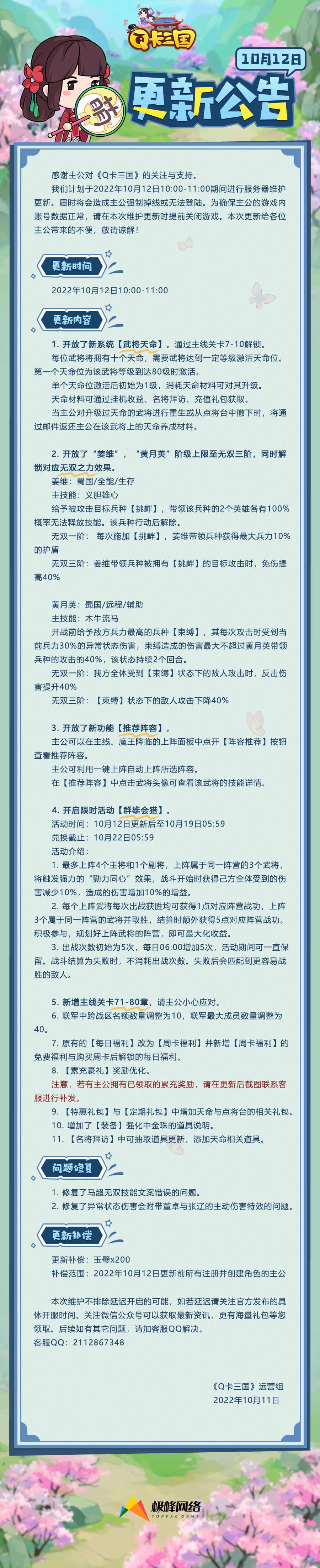 《Q卡三国》10月12日更新公告