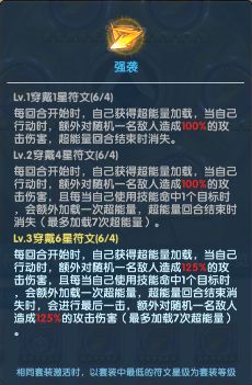 新符文强袭属于输出类型的符文,能够提升英雄的爆发输出能力,适合技能攻击目标较多的英雄配戴。适合火羽圣凰、飞刃之王和轮回之神、弑神剑魔等英雄穿戴。