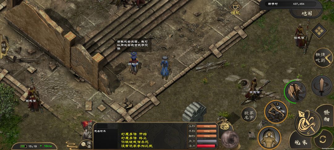 按照老侠客的指引,前去拜访神医的路上遇到了一个形迹可疑的人,也就多看了一眼,二话不说就要跟我干一架,被教训了一顿,赶路要紧,先走一步,他说他叫“雾丸”,让我记住他的名字。