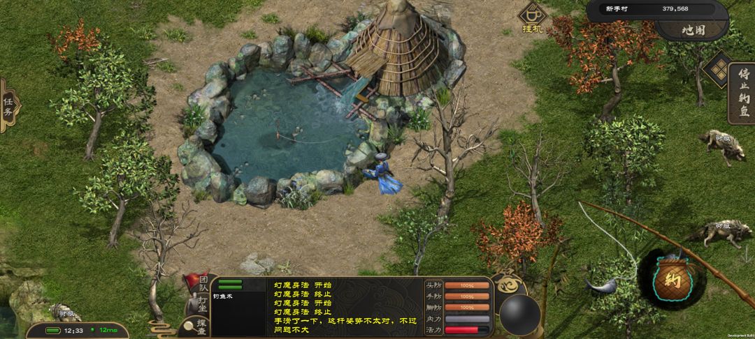 路过无人看管的水池子,看到里面正好有鱼,先用竹竿练练钓鱼术,或许以后能钓鱼为生(杆没有甩好,不过问题不大)。