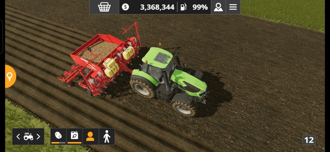 棉花、向日葵、玉米、土豆、甜菜这五种作物是需要专门的播种机来播种以及专门的割台或者收割机收获,这个大家购买农机的时候需要注意对应图标(下图是土豆播种机和土豆收割机)