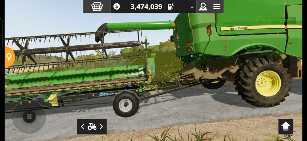 随着游戏往后推进,我们的收割机会越来越大,越来越宽,割台也越来越长,因为收割机要辗转于不同的农田收割,大家肯定会发现带着割台在路上行驶非常不方便,遇到狭窄路段腾挪起来很困难