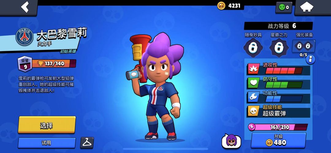 英雄推荐:雪莉雪莉在乱斗足球中的出场率其实并不高,但是雪莉的进攻能力是全荒野乱斗中很强的存在,雪莉的大招也是很可怕的,在乱斗足球中只要在雪莉有大招的情况下,她可以带着球直接冲向对方的球门瞄准球门踢不需要顾虑前面有无障碍物或者敌人。