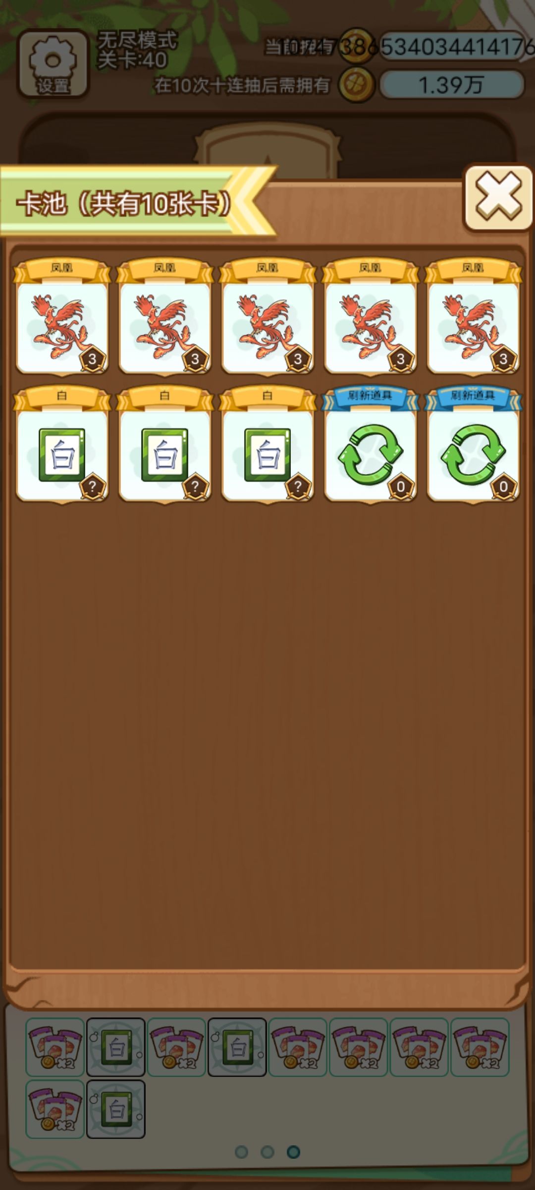 接下来说卡池,3白(保底)+2刷新固定。剩下5个空位,5凤凰算768/2妈3娃36/龙看刷了多少。