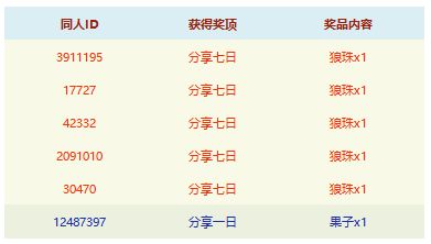感谢大家参与本次活动,今日公布以下玩家获得本次活动的奖品!