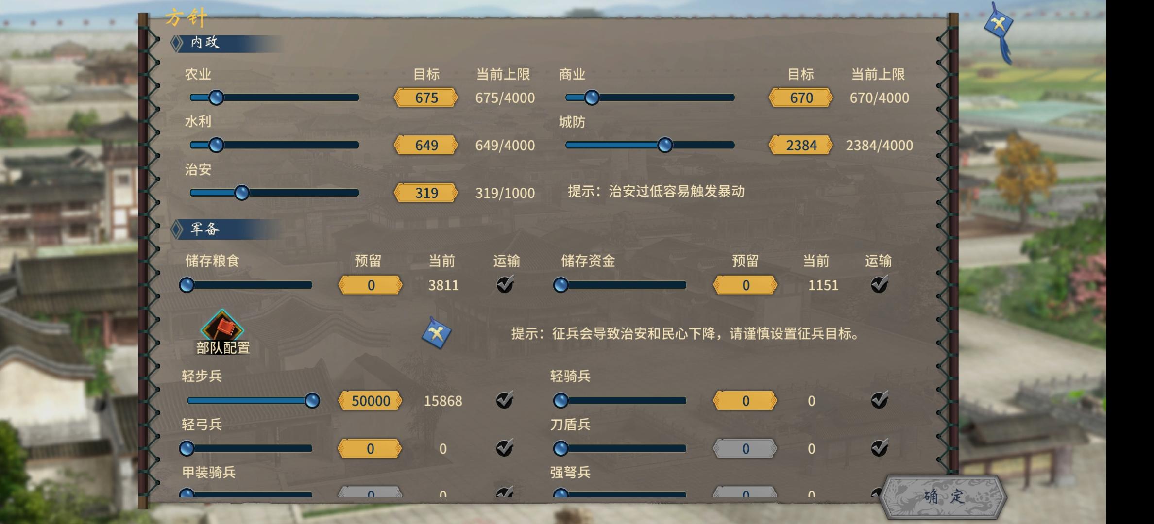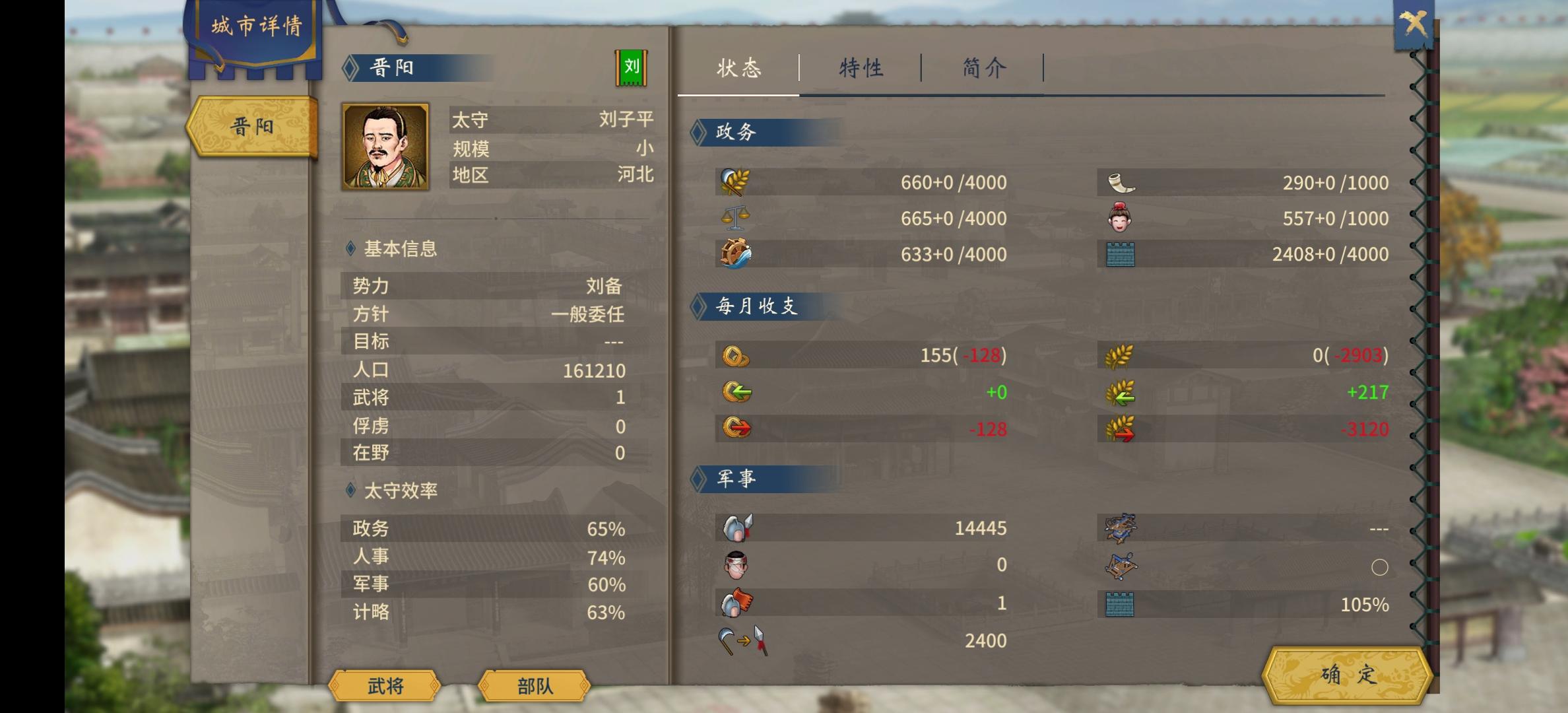 400难度。我是二月100兵出发去的晋阳。三月提示晋阳因为粮食士兵逃跑。。后面我一看。哟西~
