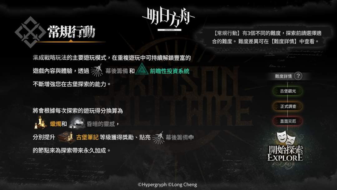 可选择难度探索,每个难度的结算分数倍率与部分内容皆不相同,每一轮探索结束都将进行分数结算,并将分数转化为「蜡烛」与「昏暗的灵感」。