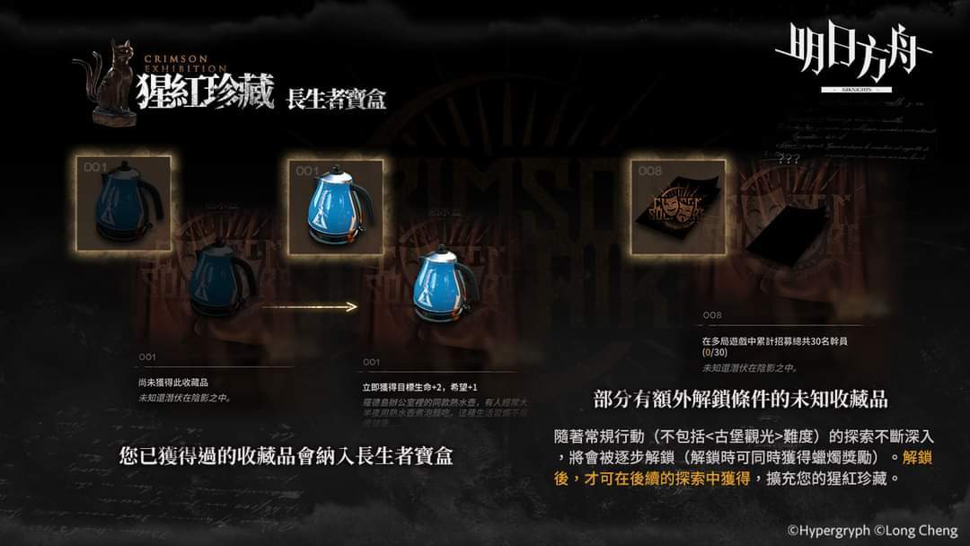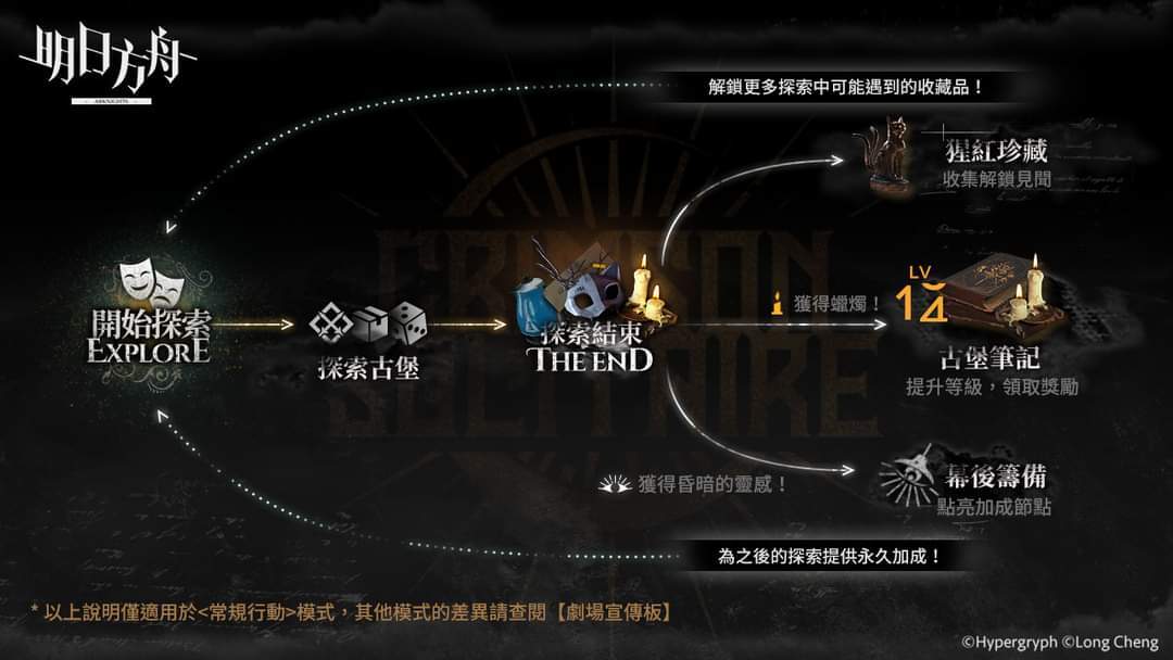 可透过「常规行动-探索结束」获得,用于「幕后筹备」永久提升博士在古堡中探索的能力。