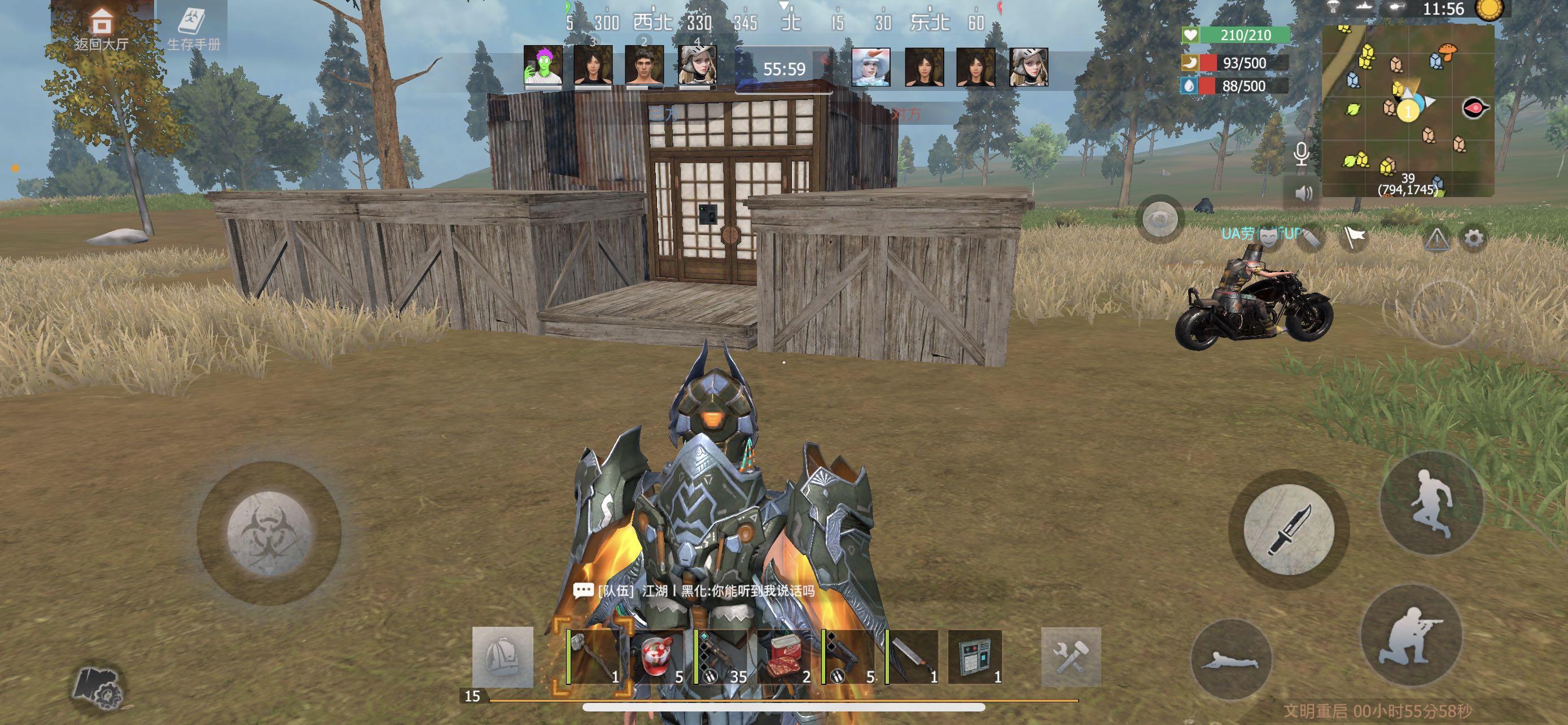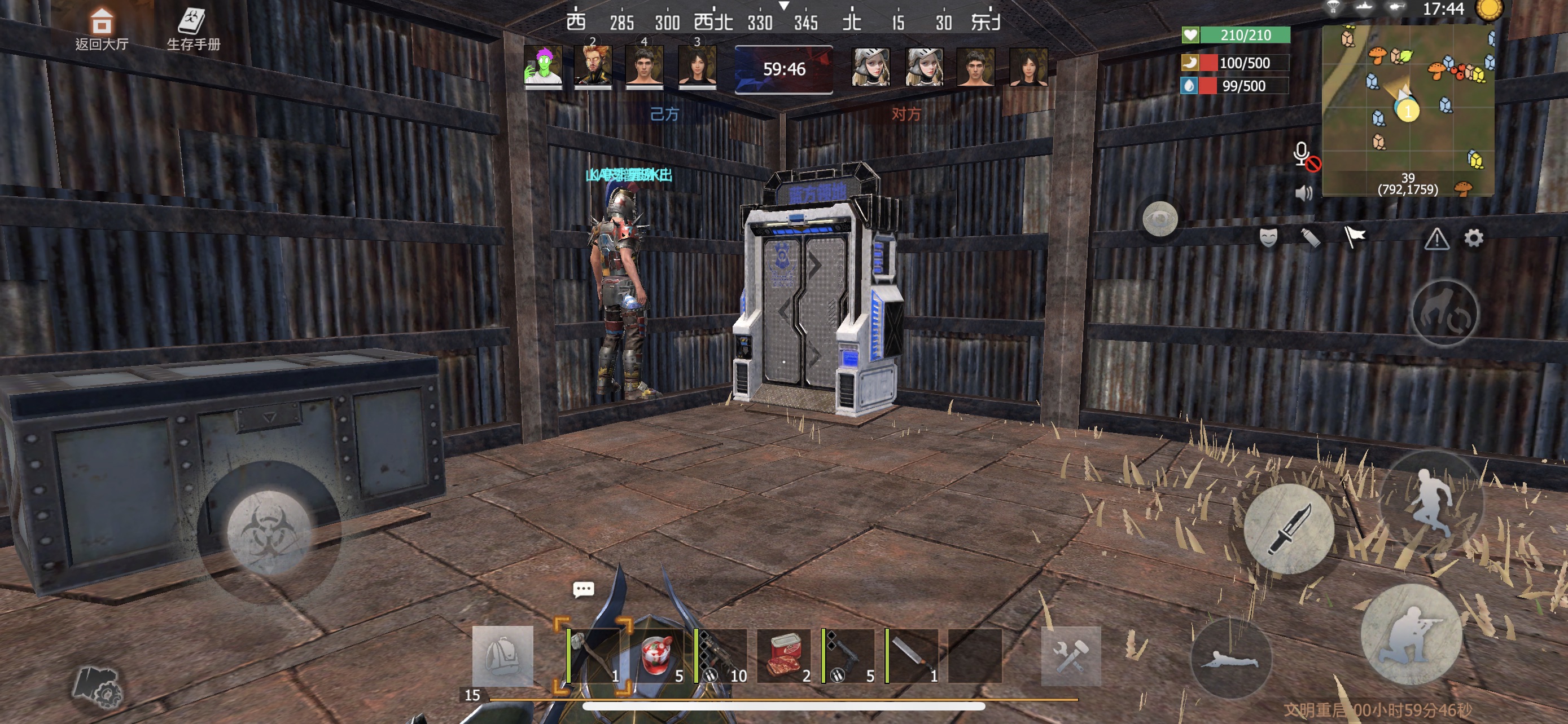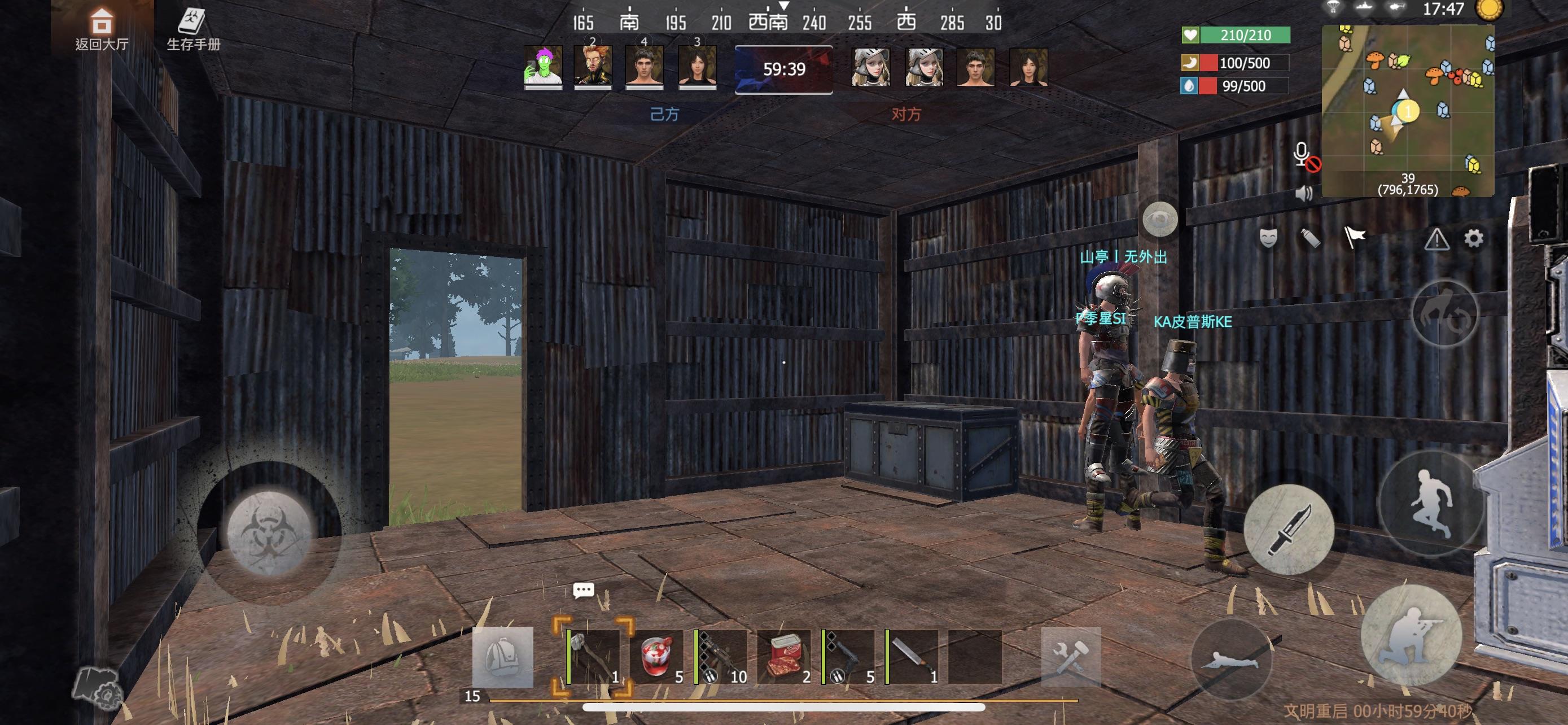 进入游戏战局后我们会出生在一个2×2的铁房子里!
