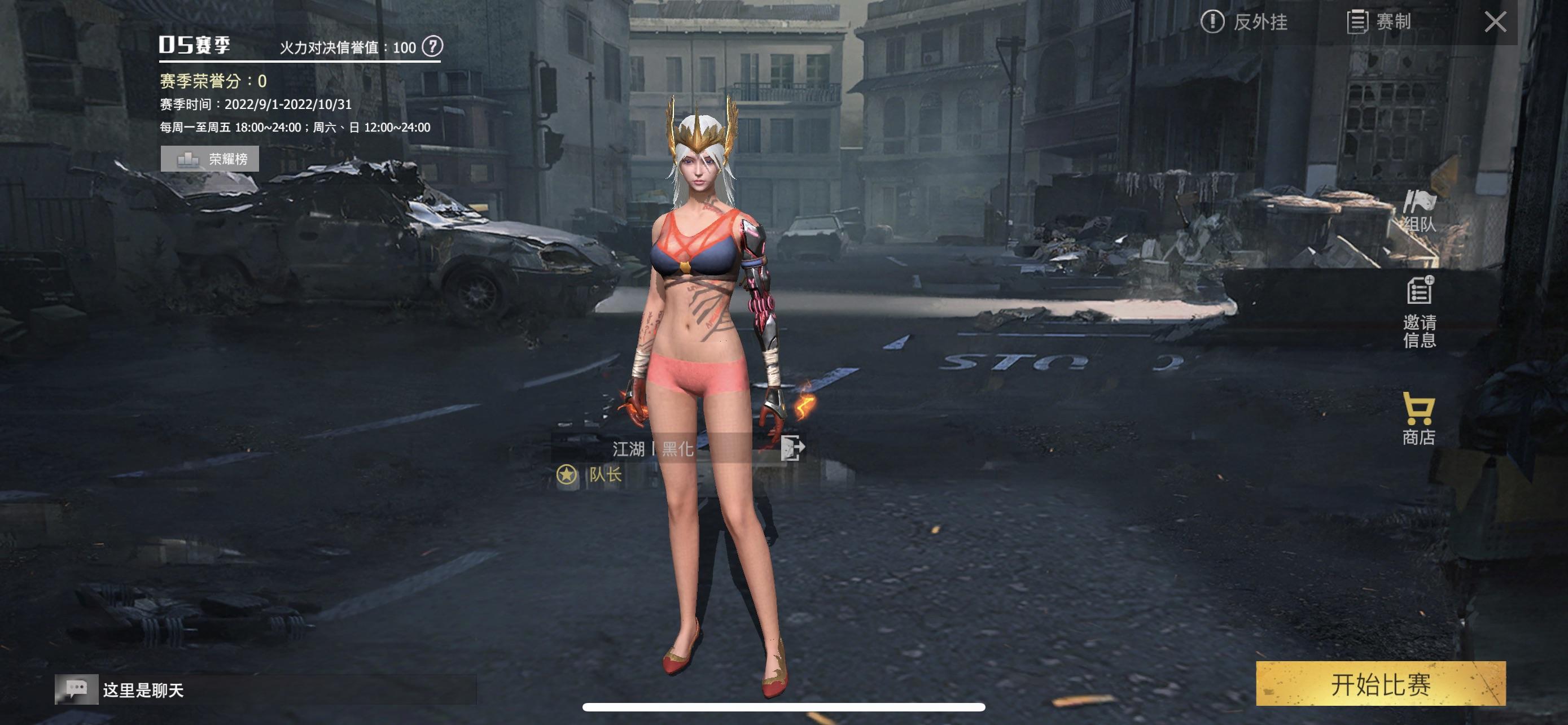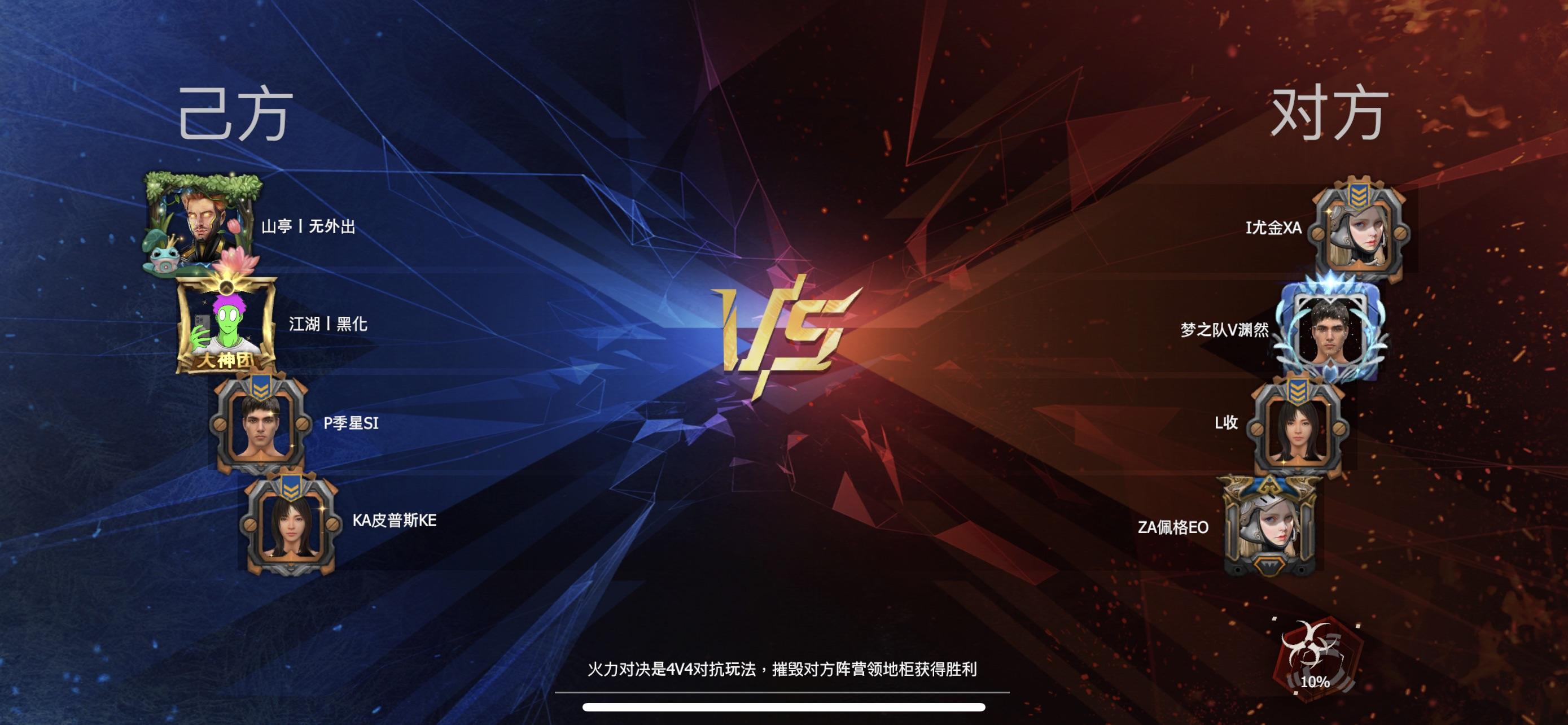 2.进入火力对决大厅右侧有组队界面可邀请好友或系统推荐,战队的朋友一起娱乐,可共4人一起!然后点击开始比赛,进行匹配等待!(有时人少会5分钟自动取消排队需要手动再次排队)