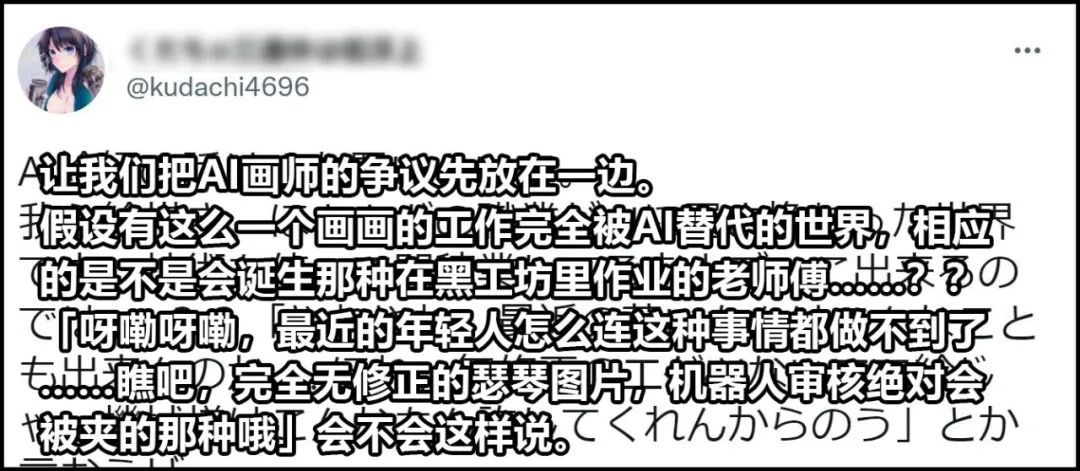 所以担心“AI饿死画师”纯属杞人忧天。AI作画能够有这么多讨论,也未必是因为这个行业的人充满焦虑,很多人对AI的反感情绪只是单纯不爽。