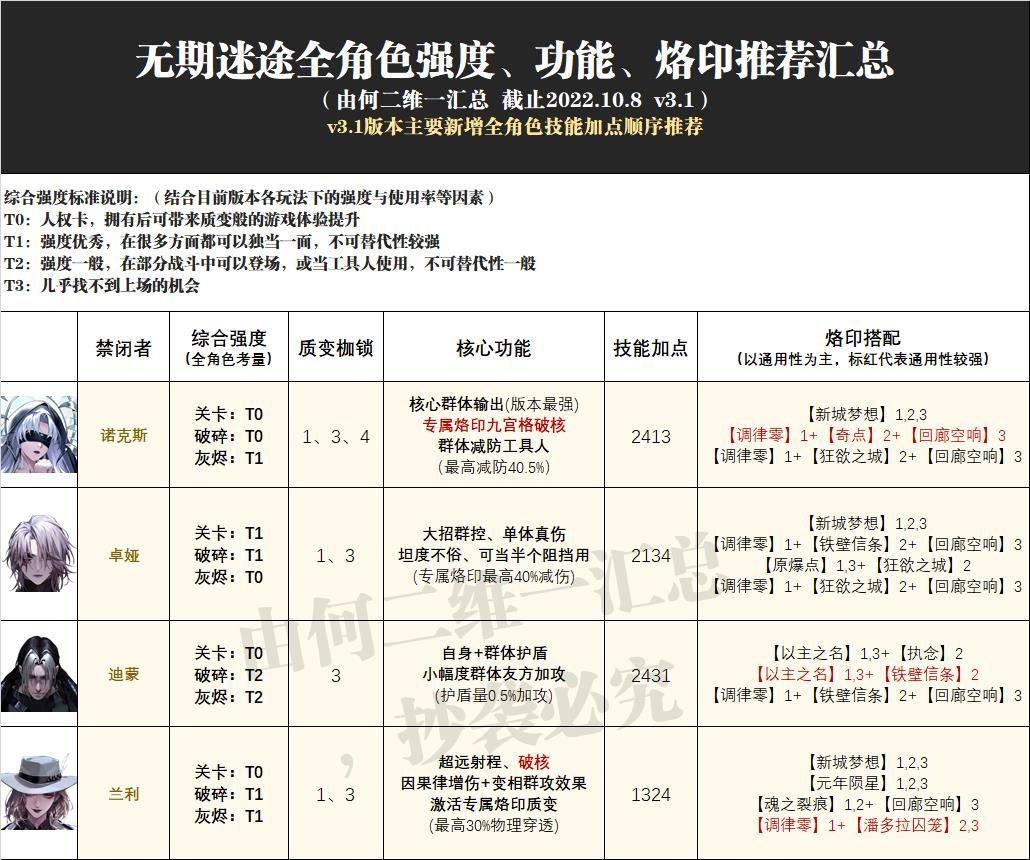 无期迷途:全角色强度、功能、烙印搭配汇总攻略v3.1版本!新加入技能顺序推荐!(10.8)
