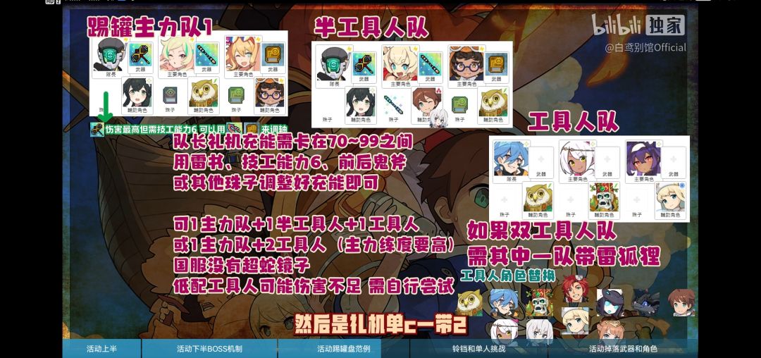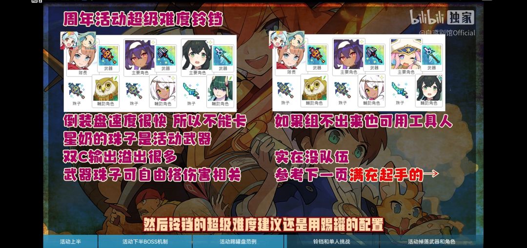 不知道大家为了礼机都用了多少资源呢?礼机池子即将结束,周年庆活动也马上就要到来了,长草的日子马上就要结束了,今天我将介绍一下周年庆活动所需要的配队以及周年庆卡池角色的抽取建议(本帖图片内容来自up@叫我棉被@白鸢别馆official)