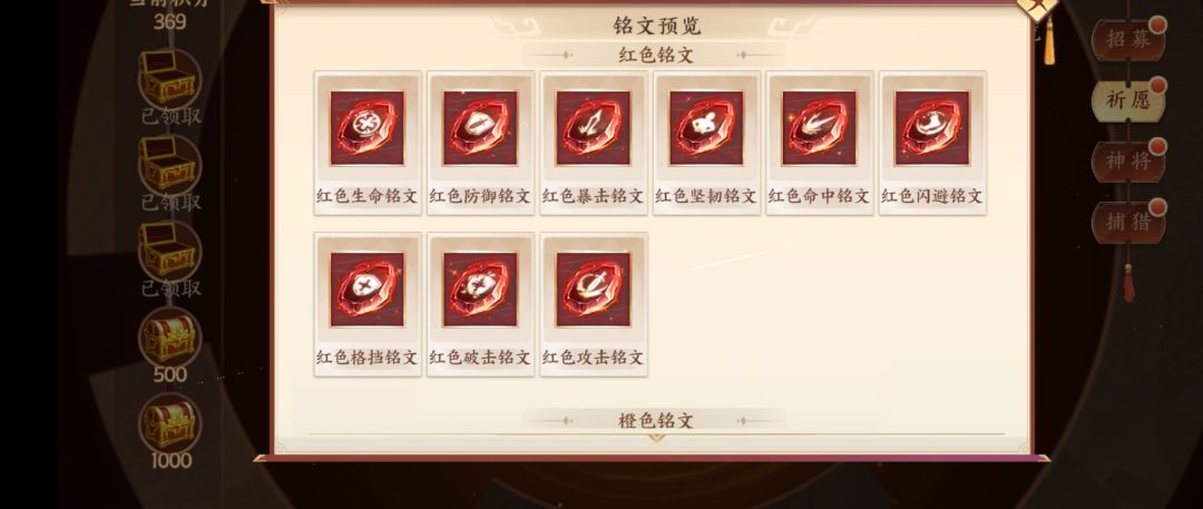 3:武将,紫色,橙卡,14将,15神将,君主(v11拥有),无双(获取难度大,养成花销很多)(紫卡不考虑用,橙卡前期过渡)