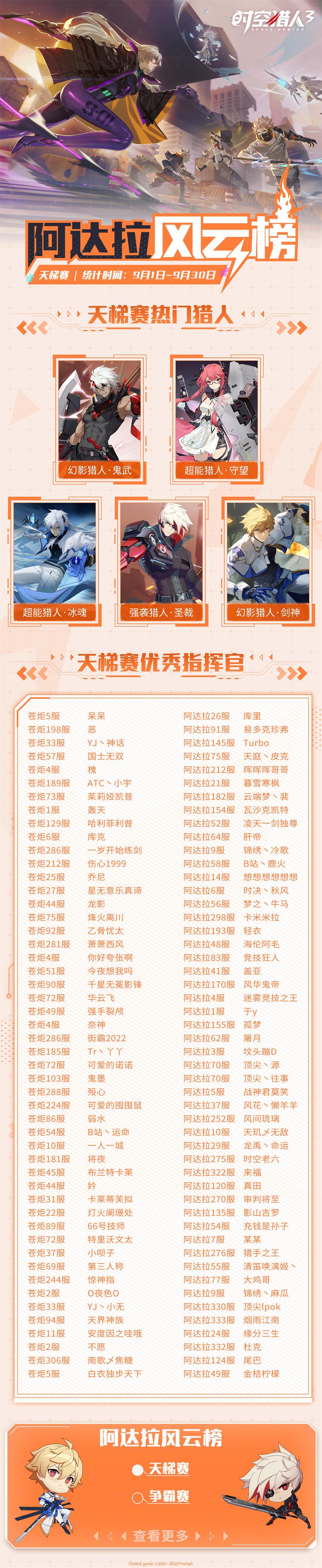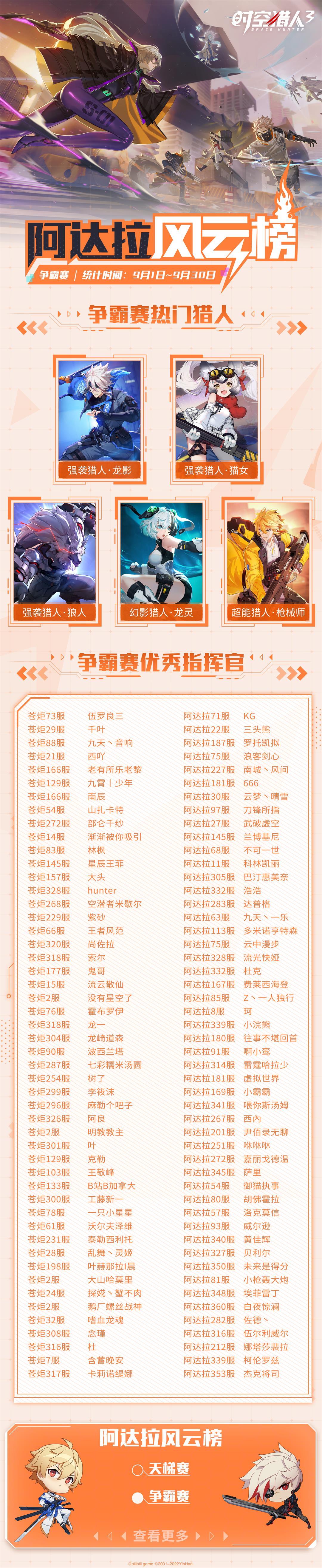 【阿达拉风云榜】 9月热门猎人与优秀指挥官揭晓!(内含福利兑换码)