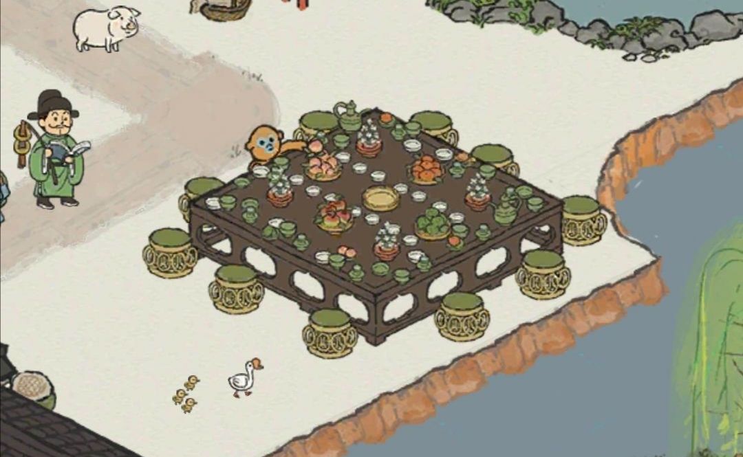 此画庭台器具描绘得极为华美,有别于五代时文会图简单的背景,北宋的文会图系置于完备的花园场景之中,由此也反映出北宋园林的发达。