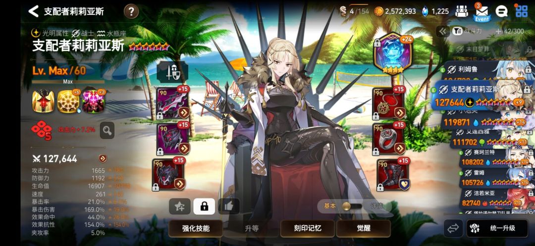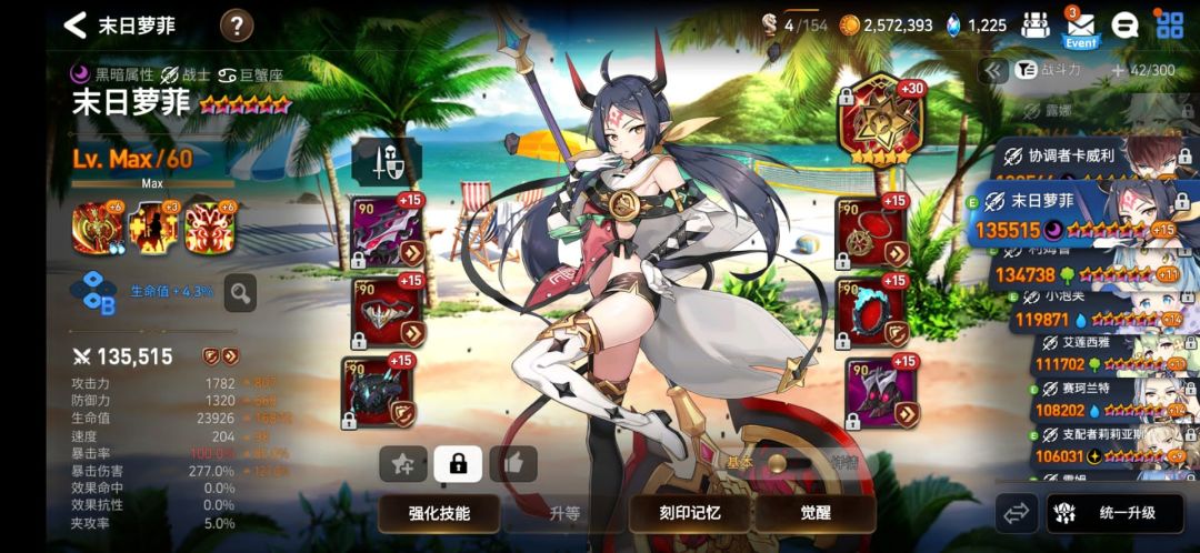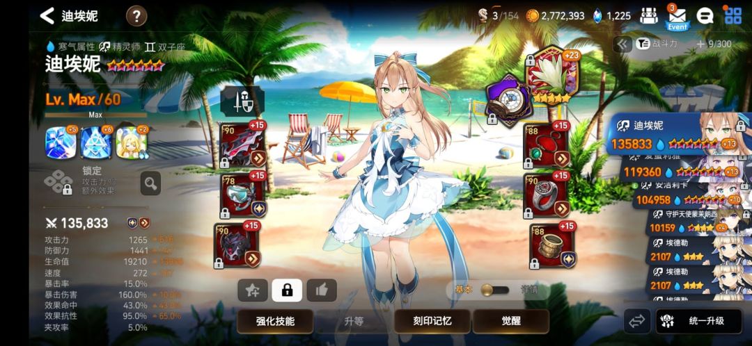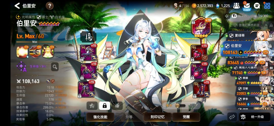 第二,奶妈阶,这个赛季改版后我认为木奶和圣女是最值得去练的,但是我因为木奶之前喂给了高贵的光瑞儿所以正在从零开始,在此附上我最常用的角色面板
