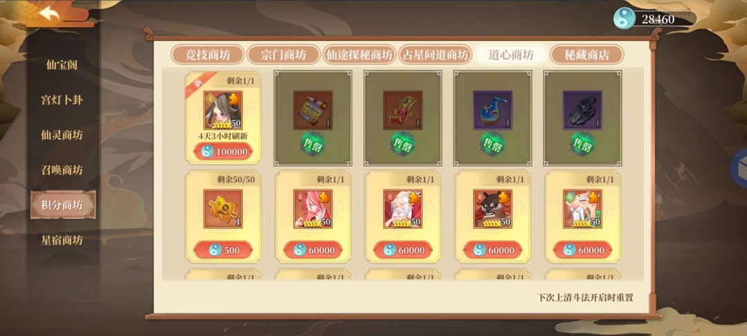 其次是玄女,玄女除了五行,还有道心商坊可以换(这个应该是第三周的时候开),获取途径是上清挑战跟每周上清结束邮件奖励,大概两三周能存一个?(我没细算),道心目前能换取的15资质是玄女,女娲,杨戬,云霄,可能有误差,我也记不太清了哈哈,反正玄女是有的。