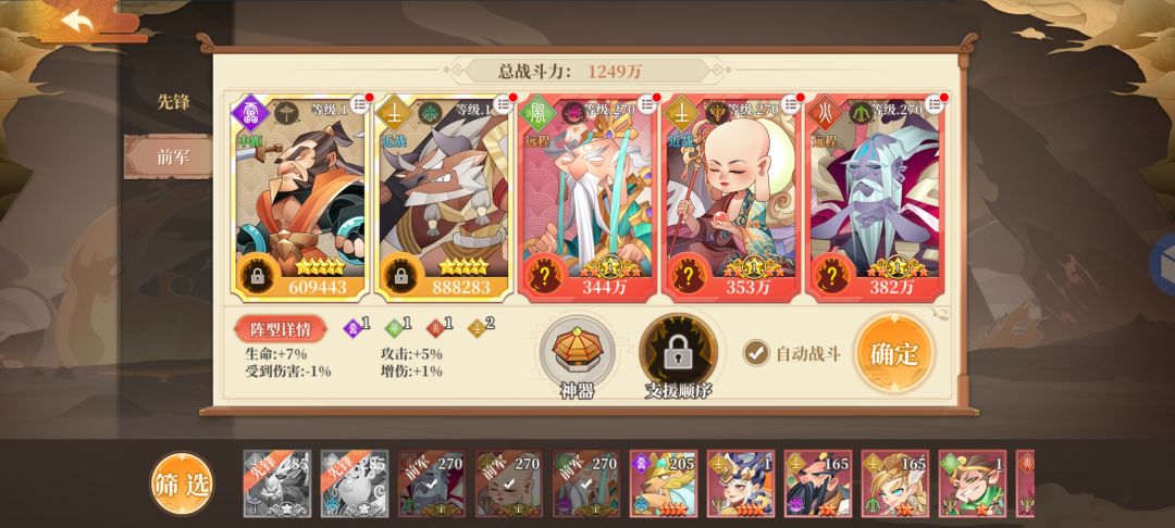 1.推荐阵容 燃灯,地藏,太乙,广法,牛魔(接引道人)(前期)(这里牛魔不推荐十星,十星重置需要置换精华,获取难度比较少,九星先凑合用就行,后面给别的仙灵上十星当狗粮,坦度比较拉,没的选择可以拉)