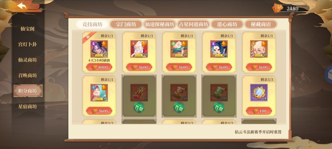 这个比较关键,灵运确保到第四周能够存到37张(活动有限时兑换,钻石加铜币能换15张,挑战活动能拿13张,理论上存22张就够,看个人我建议是越多越好)兑换途径占星问道,别的不需要换,就换灵运签就行了,多的灵运签可以适当抽一点来加强仙灵战力。