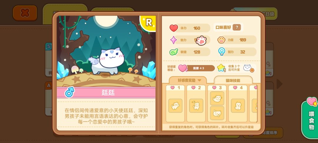 1.喂食。去手账本可以选择想喂的猫猫。