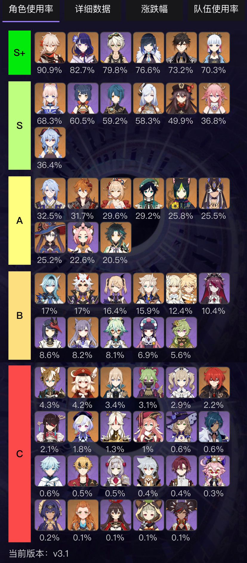 原神3.1版本深渊角色使用率榜出来了,来看看吧~