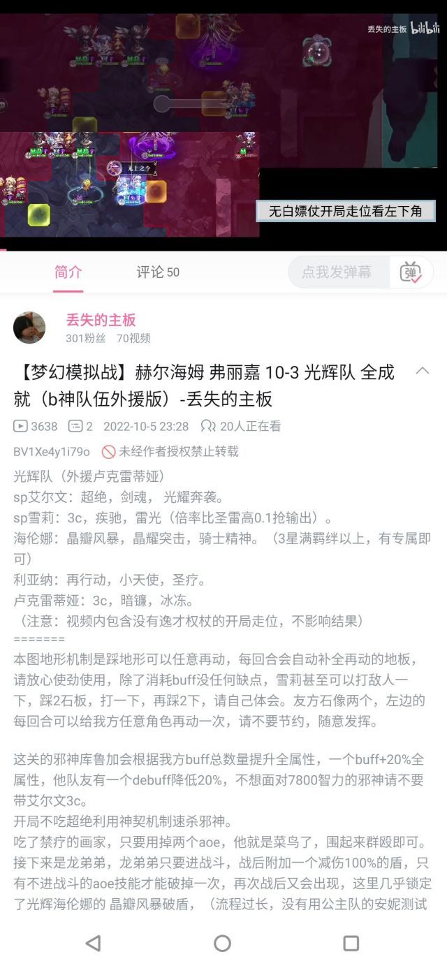 【梦幻模拟战】[攻略心得][作业?]神契弗丽嘉1-1到10-3全部关卡视频,30个,仿b神队伍的风格,需要自取……
