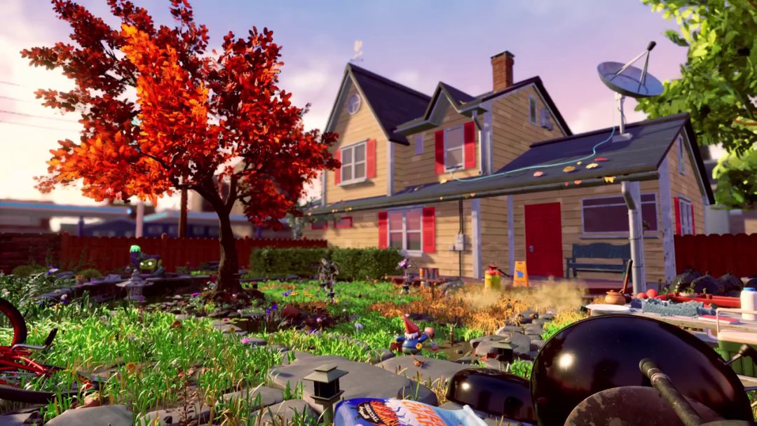 尽管游戏有着令人难忘的角色,但《禁闭求生》的亮点无疑是后院本身。这个院子景色宜人,每一片草地都充满了个性。院子中有一处不太适合居住的地方,一个倒下来的炭火烧烤架,对于主角们来说就像是蔓延的火山。而另一个地方则有个漏气的杀虫剂,导致那片区域充满了毒气和变异的昆虫。儿童沙坑变成了可笑且充满敌意的沙漠,在阳光下待上几秒钟就会让你燃烧起来,所以你必须在树荫之间穿梭来寻求掩护。