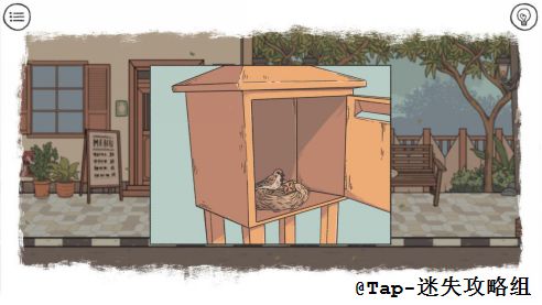 比如咖啡馆和咖啡馆外面的两个场景,从咖啡馆窗户上收到的奇怪符号的信跟咖啡馆外几张同样有着奇怪符号的纸似乎存在着一点联系。天台上日记本里的照片背后留下来的音符可以去打开院子里木柜子的密码锁。没有留意到这些细小的联系的朋友也不用担心,右上角的按钮是可以帮助玩家在游戏时检查到那些被忽略掉的,可互动的地方。