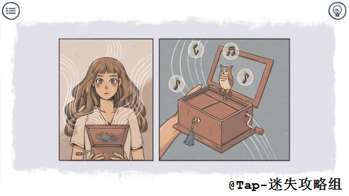 游戏的故事以倒叙的方式展开,讲述了一个女孩因一首小提琴音乐与一个猫头鹰先生结识,但猫头鹰先生在后面还是因为身患绝症离开了女孩,才导致她一直陷在自己的回忆里,直到自己在记忆中跟寻着“猫头鹰先生”的脚步,最后同“他”走出回忆而释怀。这故事情节没有什么离奇,甚至都可以说是稀疏平常。不过游戏在画面和音乐上的配合,以及悲喜交错的叙述方式,使得游戏在过程中让玩家体验到更多的是视觉和听觉上的放松,然后沉浸在寻物解谜的过程上。