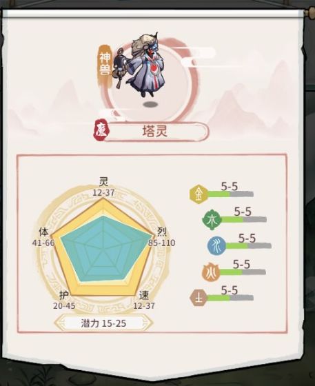 (神兽属性图,以上为测试服画面,以实际上线为准)