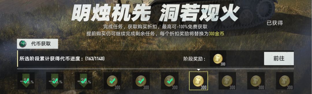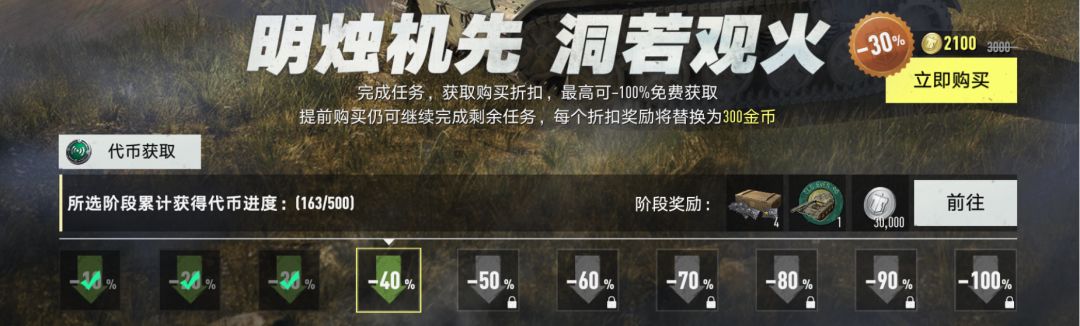迫不及待想体验新锐坦克的长官注意啦!先购买,再返还,抢先体验全新坦克!您可以在活动中的任意时间购买活动礼包,购买后,仍然可以继续完成剩余的阶段任务,活动进度将完全继承,每个阶段的折扣奖励则替换为等值金币!