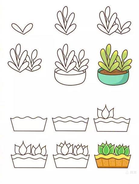 小朋友们,这是一颗含羞草,下面的那个是仙女草,但是,含羞草和仙女草在绘画技巧当中都有好几个步骤,现在我就来教你们画含羞草还有仙女草的6个步骤。画含羞草:1.第一步骤,先画出最底下的两颗草苗。2.第二步骤,再画出上面三个草苗。3.第三步骤,再画出右边的4颗含羞草苗。4.第四步骤,往右边那个含羞草再画上一颗草苗。5.第五步骤,再画出插含羞草的草盆。6.最后一步骤,就给含羞草涂上颜色。画仙女草:1.第一步骤,先画出仙女草的草盆。2.第二步骤,再将仙女草的草盆画一个条纹。3.第三步骤,再画出3片仙女草的叶子,画在草盆的上面的左边。4.第四步骤,再画出3片仙女草的叶子,画在草盆的上面的右边。5.第五步骤,再往仙女草的里面画两片叶子。6.最后一步骤,再将仙女草涂上颜色。