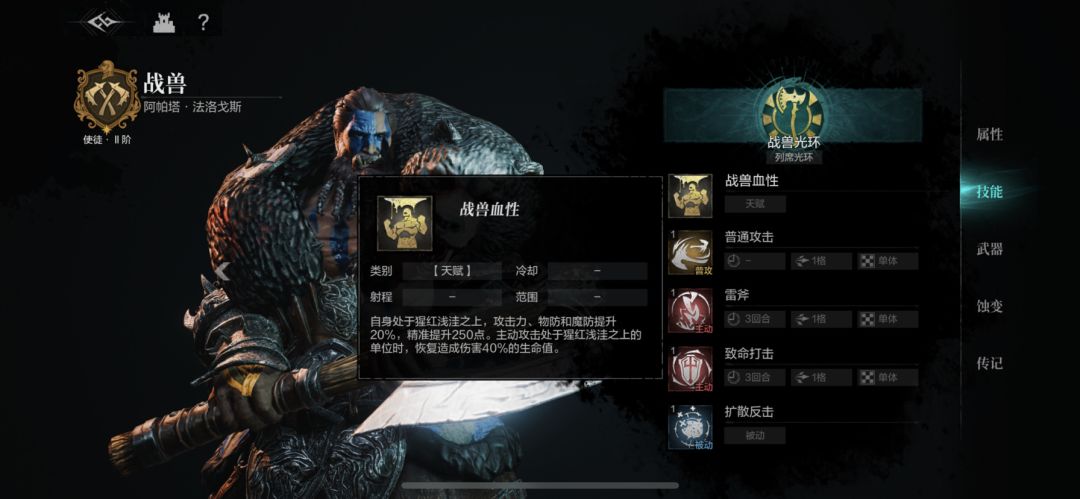 是没人玩战兽吗?这问题都没见人提过。战兽的天赋走到血坑里当前攻击回合还不能立即触发buff,还要等战兽结束当前攻击回合才能触发buff是不是有点太弱了?有时候怪走开了,你走出去buff又没了,相当于少个被动