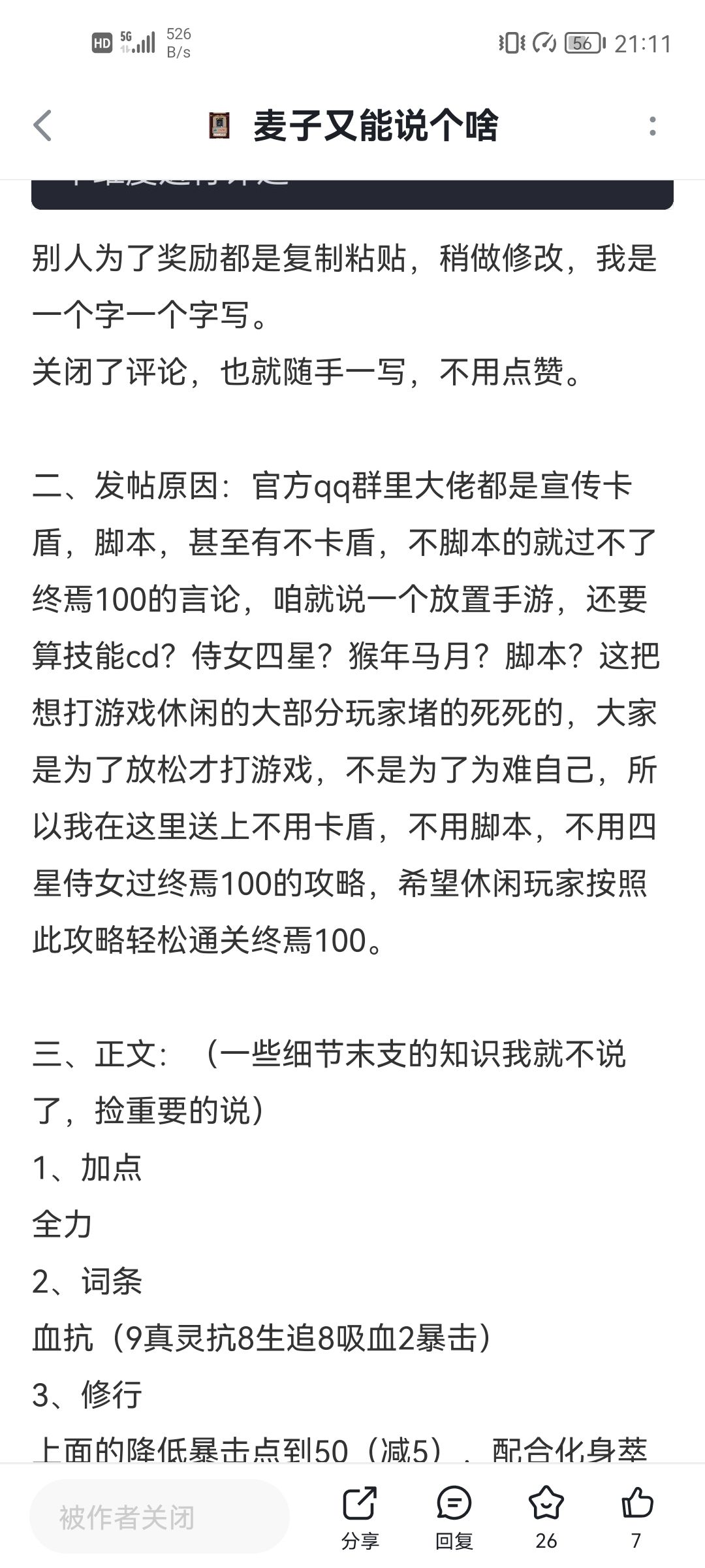 然后,他不卡盾,不用脚本,零氪23天通关了终焉100🐶,并且也发了攻略,附送截图