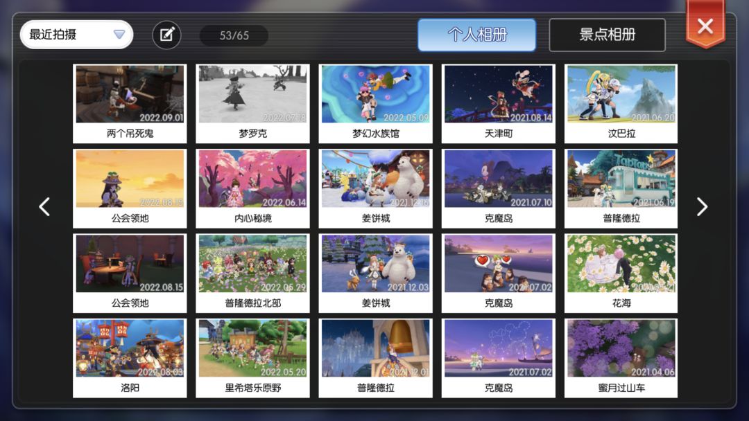 在更多-选择个人相册可以找到刚刚保存的照片,个人相册自带的数量很少,需要在冒险技能里学习增加页数