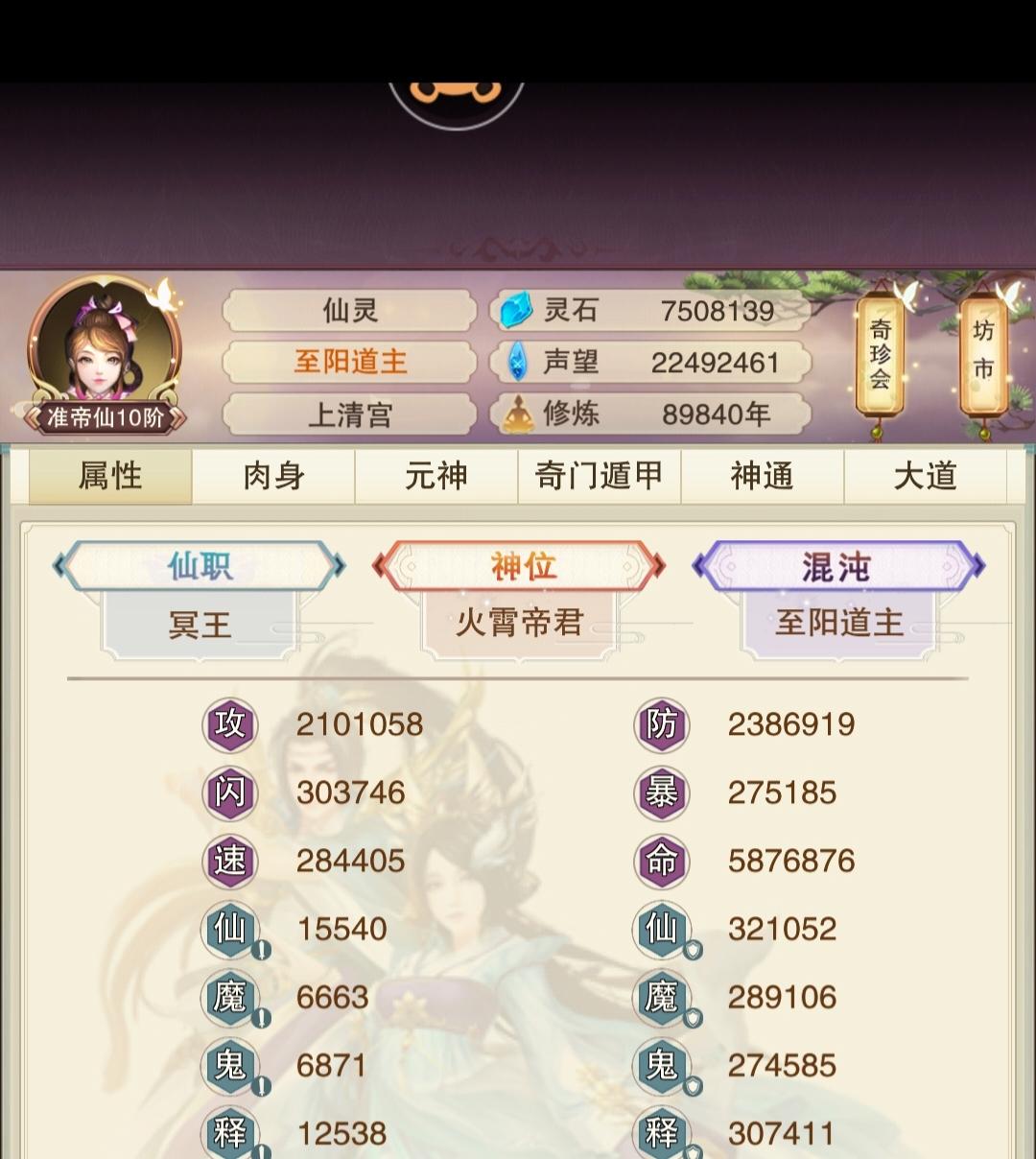现在属性增长缓慢,基本就靠混沌茶和悟道茶加属性了~