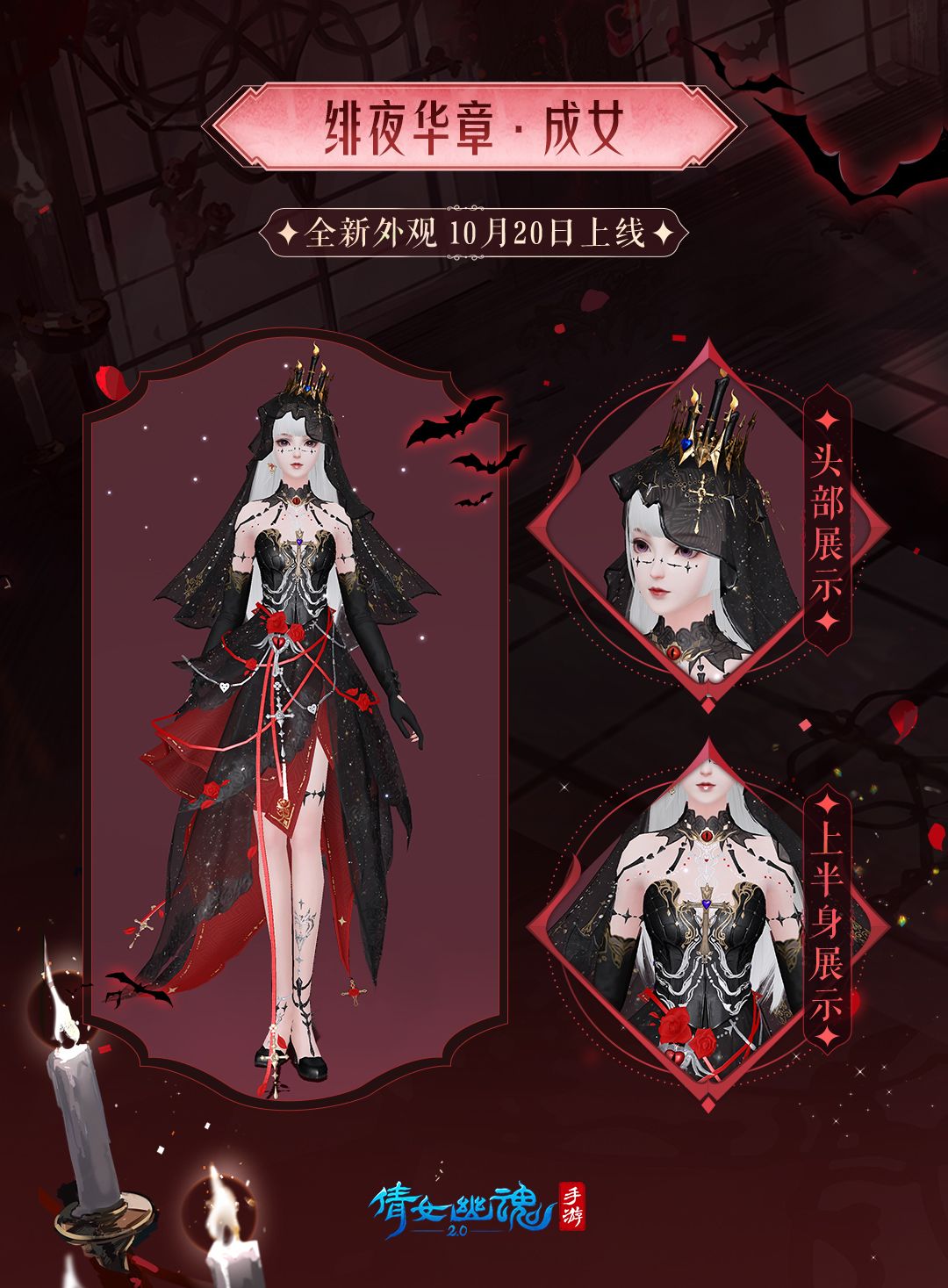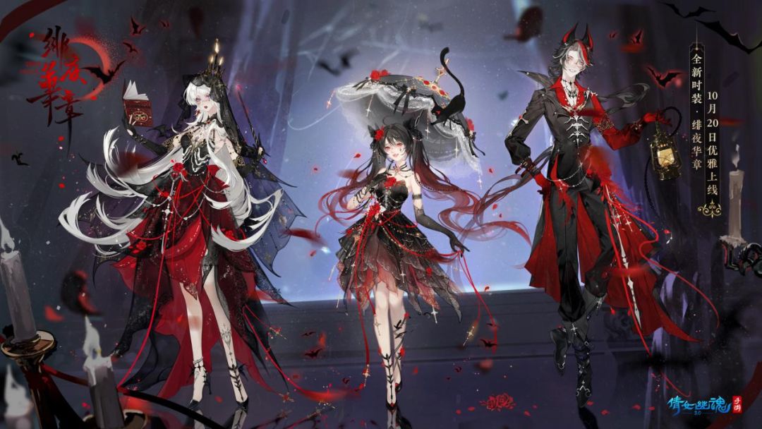 全新奇幻时装【绯夜华章】与全新月夜坐骑【幻夜使徒】奇妙上线!更有全新伞韵外观【暗月灵眸】同步推出~