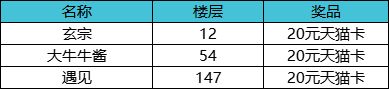 随机抽取3名正确参与活动的玩家,赠送20元天猫卡一份;