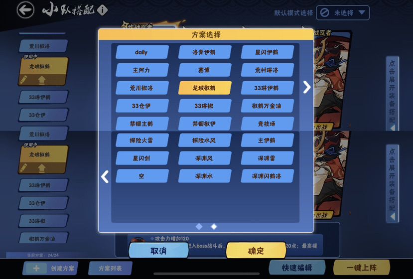 无双各个图都弄一套搭配, 弱雷的荒川用椒洛, 否则用洛青伊鹤. 再搭配两套禁锢图用的.